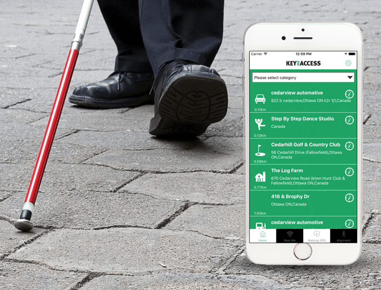 L'application mobile Key2Access aide les personnes malvoyantes ou à mobilité réduite à activer sans fil le bouton de passage piéton à l'aide de leur appareil mobile, à se repérer dans leur environnement pendant leurs déplacements, et à bénéficier d'un guidage grâce à des signaux sonores ainsi qu'à un système d'alignement par vibrations, d'une assistance et d'informations à l'intérieur des lieux équipés de Key2Access. Les utilisateurs peuvent simplement pointer et cliquer pour ouvrir des portes, lire des avis d'affichage et bien plus encore.