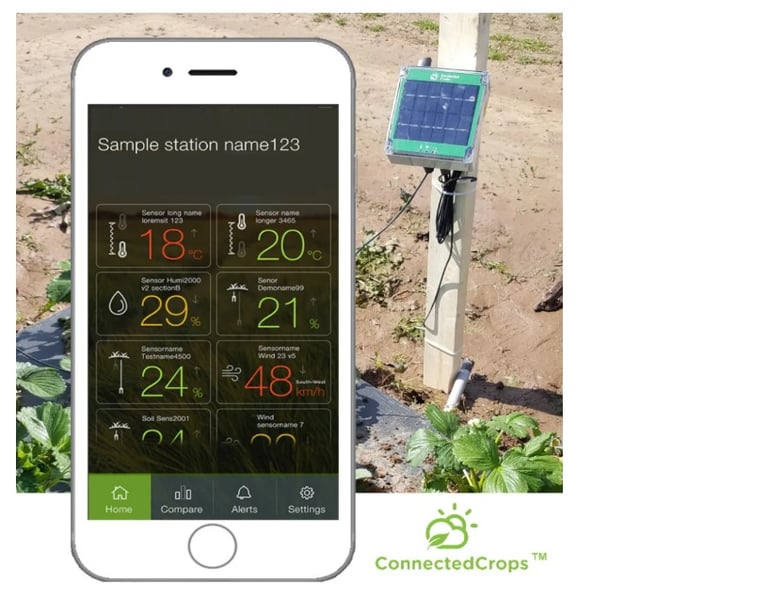 ConnectedCrops, un dispositif IoT de périphérie doté de capteurs configurables, a été développé pour offrir aux agriculteurs une solution simple d'utilisation et économique leur permettant d'adopter la technologie des capteurs à distance afin de surveiller en temps réel les conditions météorologiques et l'état des sols via une application mobile. Cette solution permet aux agriculteurs de surveiller l'état de leurs cultures même lorsqu'ils ne sont pas sur place et de recevoir des alertes lorsque les conditions changent et qu'une intervention s'impose.